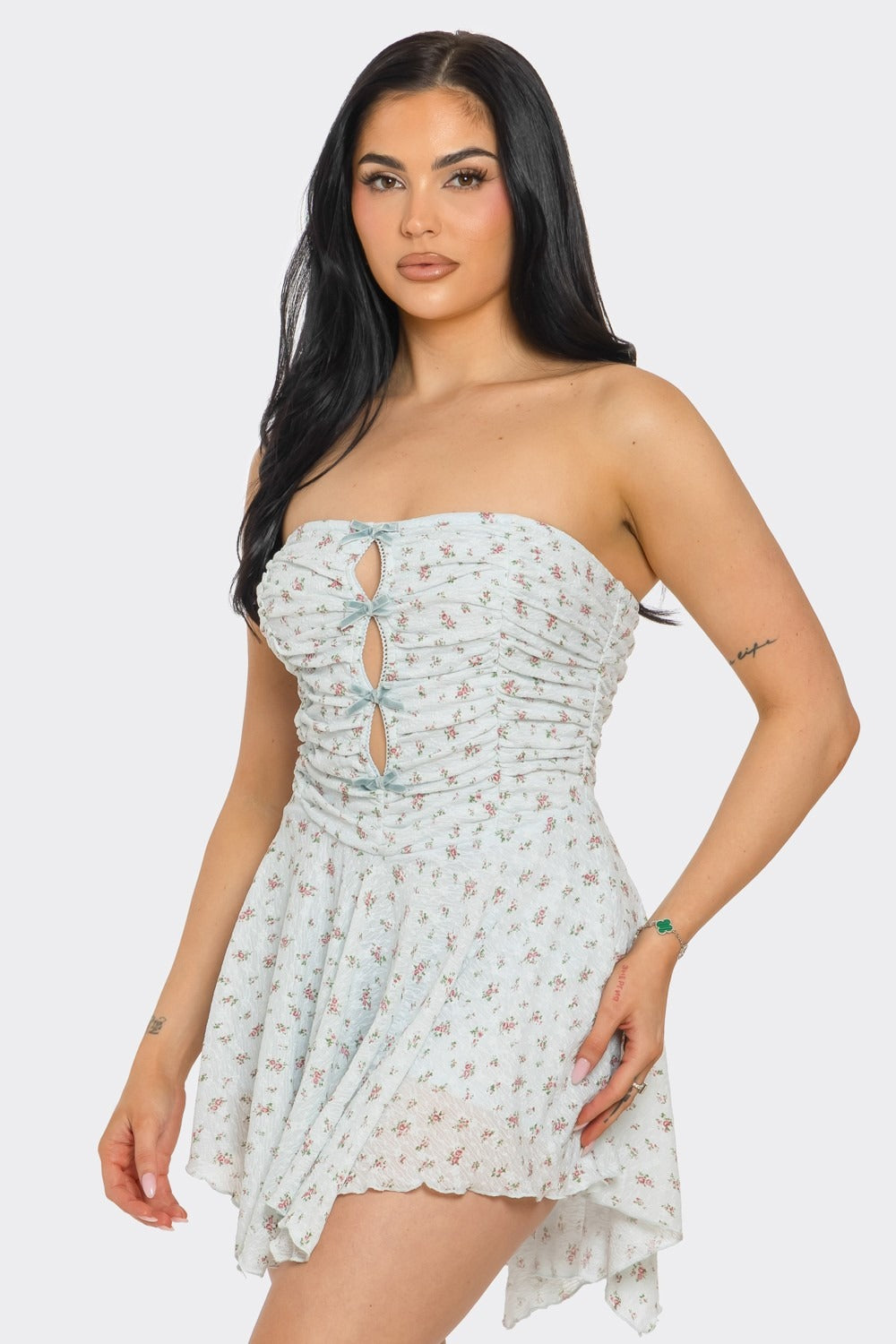 The Megs Strapless Dress is a fun summer dress with built-in shorts for comfort and ease. Perfect for sunny days and adventures!